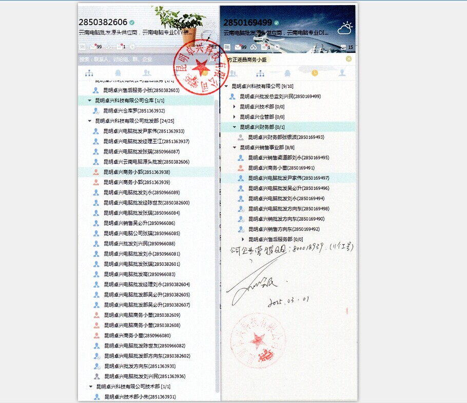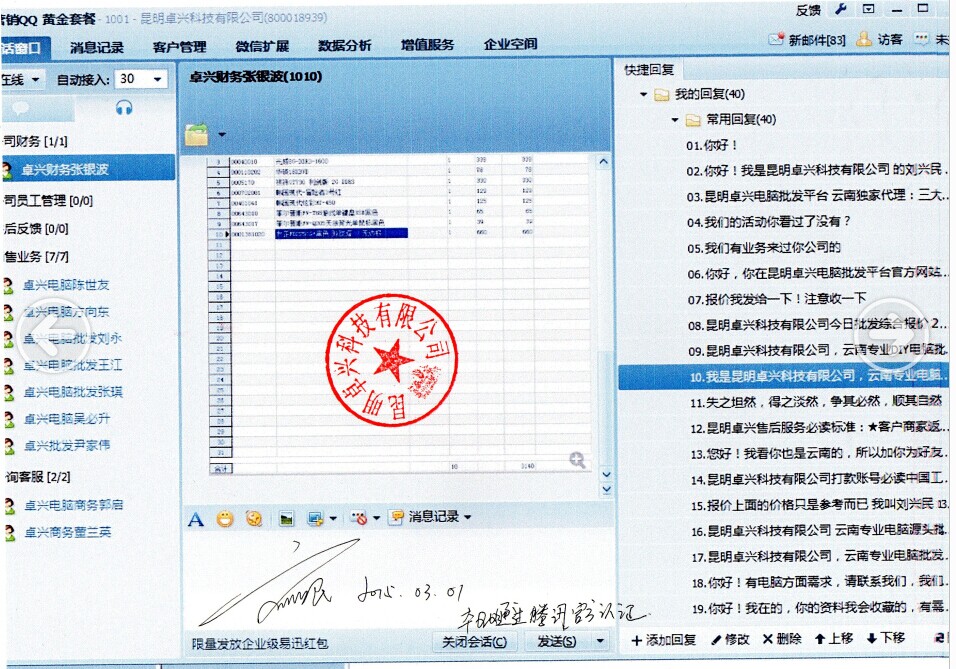 卓興批發部銷售及商務電話:0871-63938889 63935299 13211688808(劉興民QQ:2850382606);63936669(商務)QQ:2851363939); 63933325(商務QQ:2850966080);63933326(吳必升QQ:2850382605);63933327(商務QQ:2850382608); 63933328 (商務QQ:2850382601);63933329( 方向東QQ:2850382602);18860767668(張琪QQ:2850382604);66376669 (劉永QQ:2850966089)卓興用QQ是官認證的企業QQ,不隨員工變動,座機電話不會變動,員工變動都有新的員工來接手的。