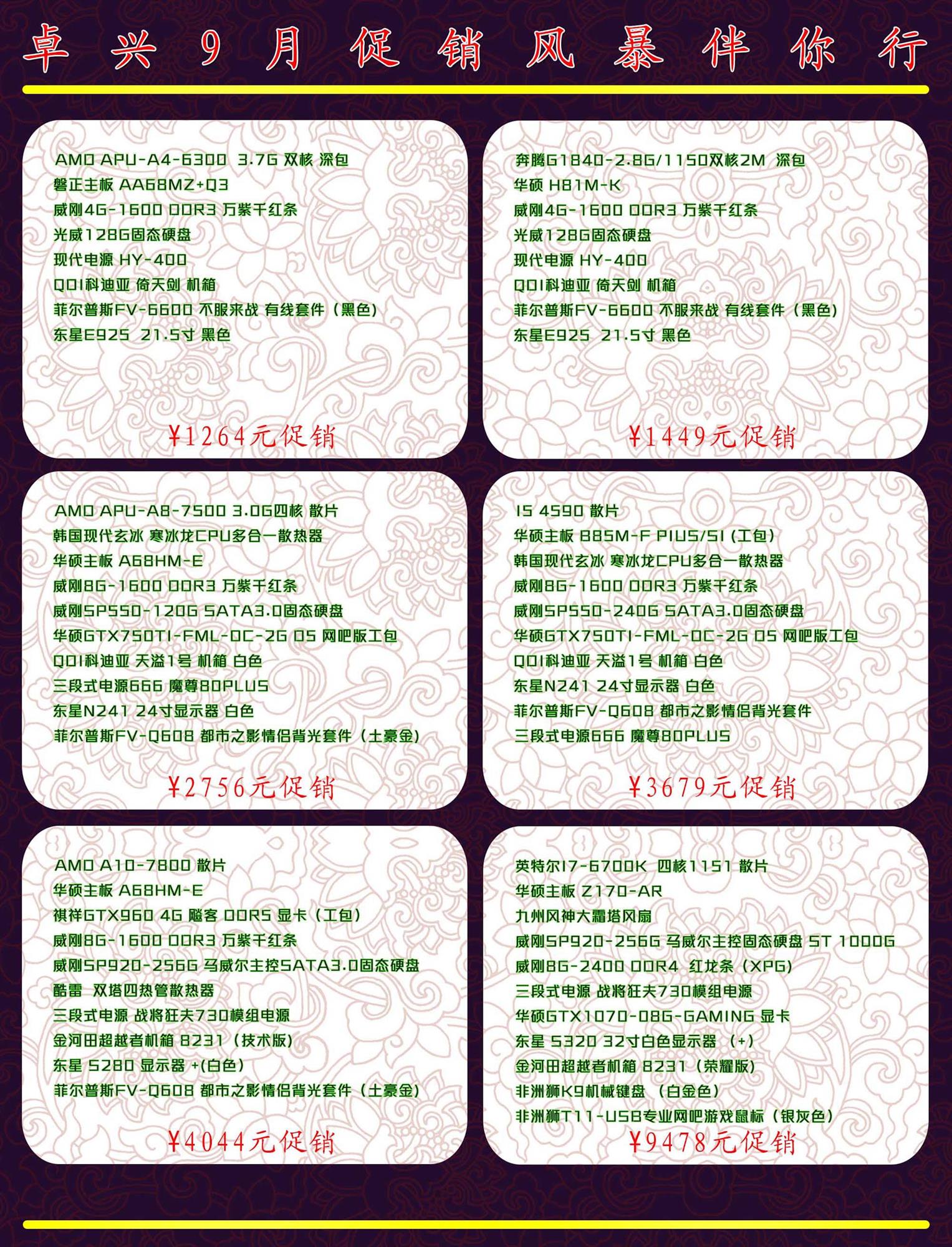 溫馨提示:以上活動(dòng)活動(dòng)時(shí)間為2016年9月1日到2016年9月30日,10月1日到10月7日為昆明卓興電腦國(guó)慶節(jié)放假時(shí)間,10月8日正常上班。